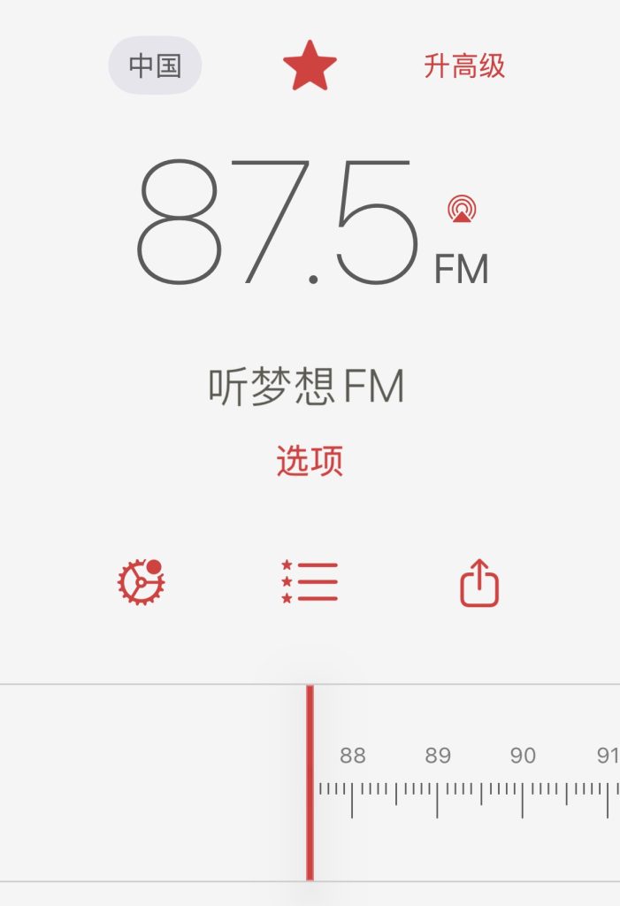 您可以下载安装 ”RadioApp”(支持苹果、安卓手机),进入“中国区”,滚动至最左侧(FM87.5) 即可在线收听。